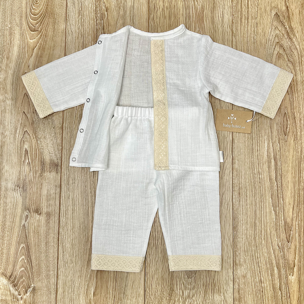 Описание Костюм из двухслойного муслина, с его характерно сжатой текстурой, выглядит очень мягким и воздушным