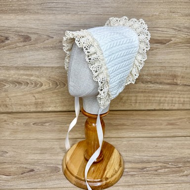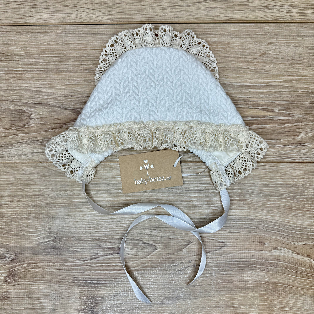 Descriere căciuliță decorată cu dantelă tricotată