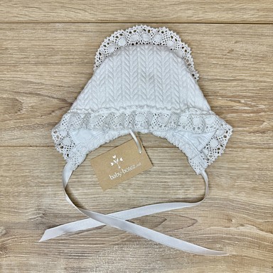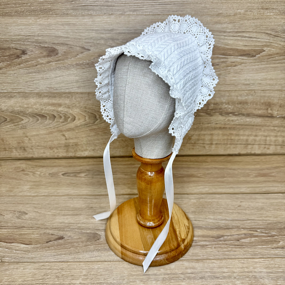 Descriere căciuliță decorată cu dantelă tricotată