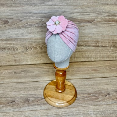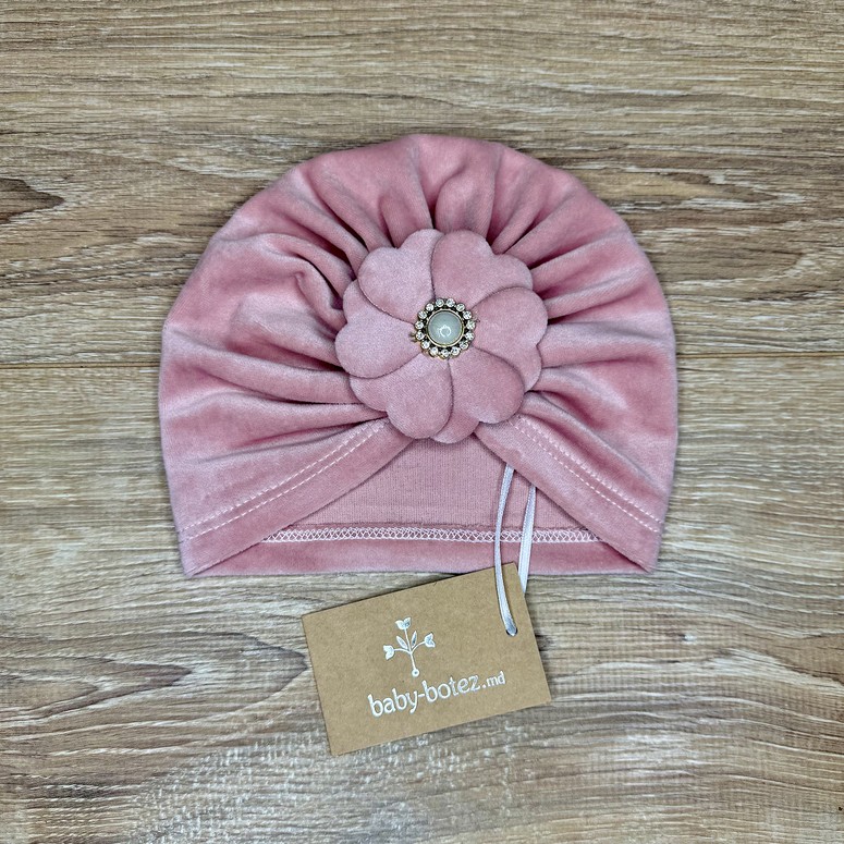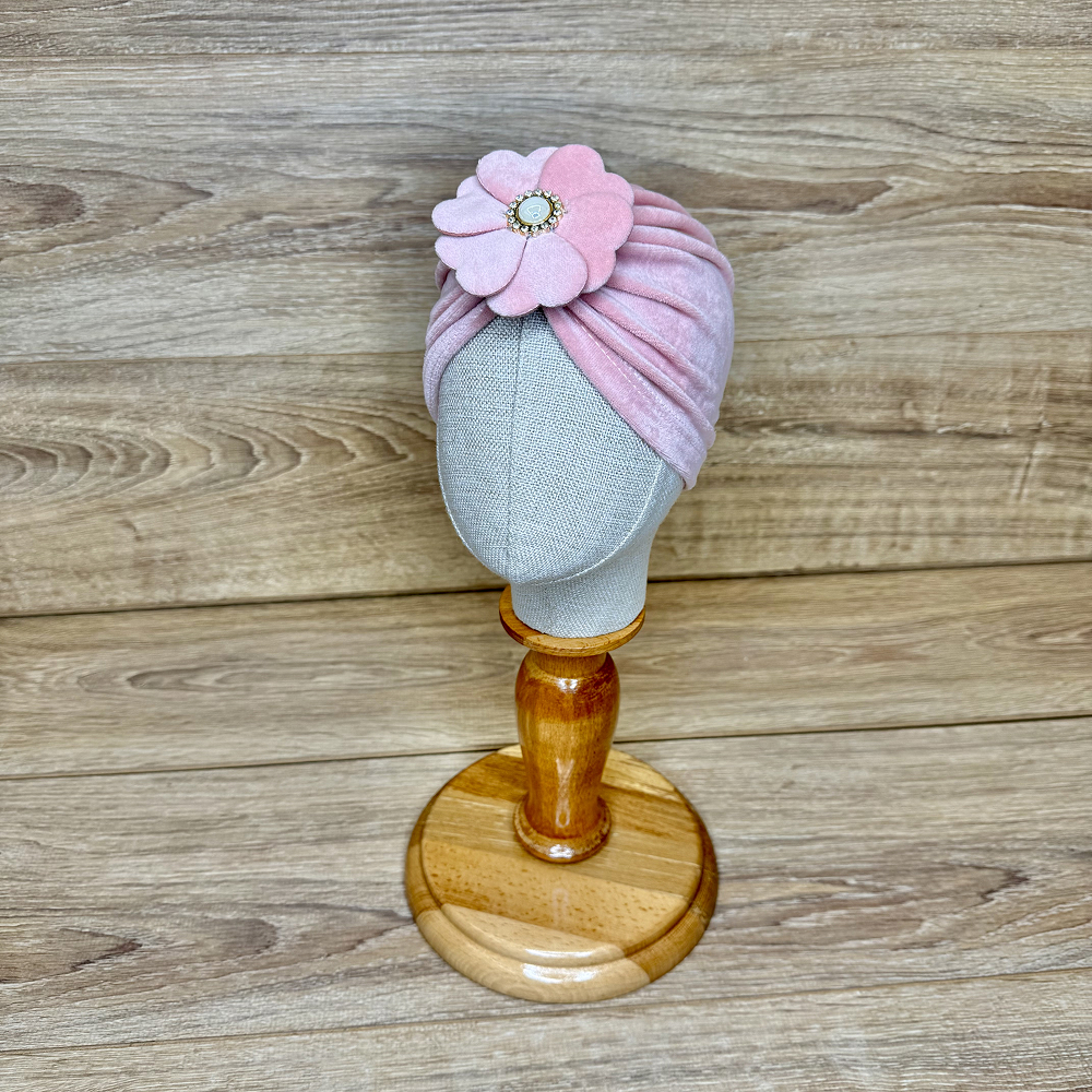 Descriere turban din velur, decorat cu floare și cristale