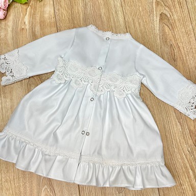 Rochie albă ca zăpada din satin nobil, creată pentru cea mai importantă primă sărbătoare – Taina Botezului. Îmbină simbolistica sacră, delicatețea și confortul desăvârșit pentru fetiță