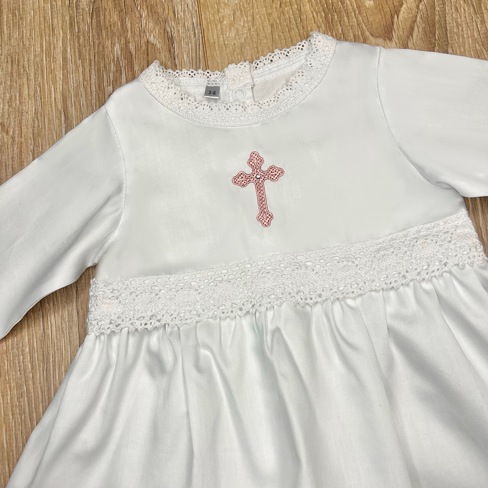 Descriere Rochie de botez în stil clasic, care combină solemnitatea cu confortul maxim pentru copil