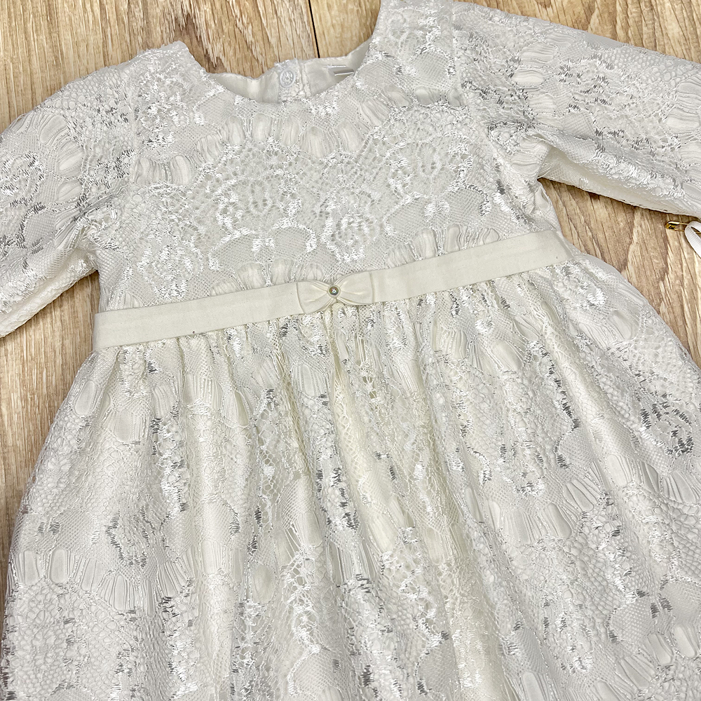 | Descriere | Rochie din dantelă, alegerea perfectă pentru mica prințesă. Realizată integral din dantelă franțuzească pe captuseală din satin natural. Talie evidențiată prin cordon subțire din satin cu fundiță și perlă, conferind eleganță și un aspect impecabil |