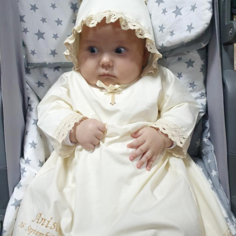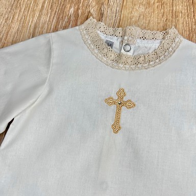 | Descriere | Cămașă clasică de botez, cu croială tradițională, simbolizează puritatea și începutul unei vieți noi. Nu restricționează mișcările bebelușului și se îmbracă ușor după ritualul de spălare |