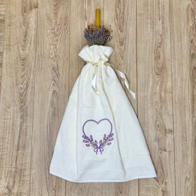 Componență prosop, lumânare din ceară naturală cu busuioc și lavandă