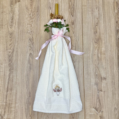 Componență prosop, lumânare din ceară naturală cu busuioc și flori artificiale