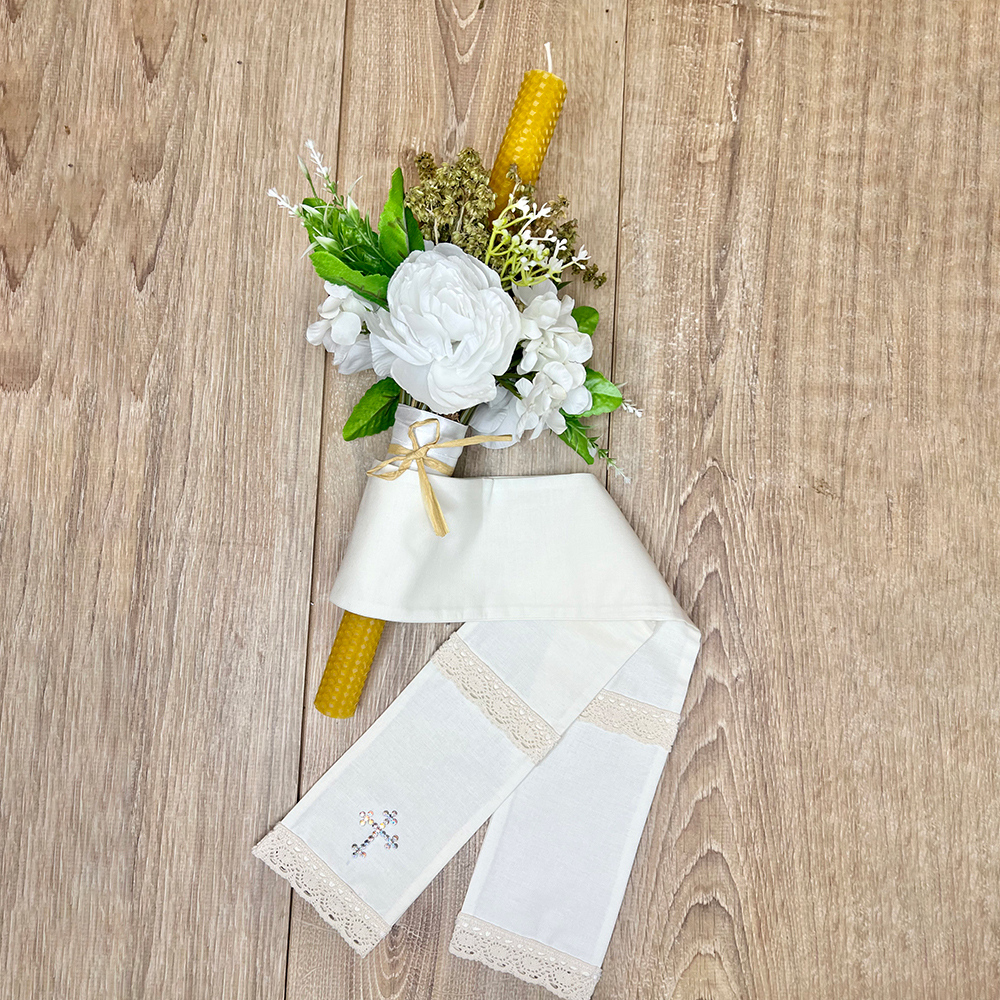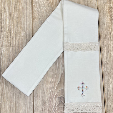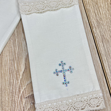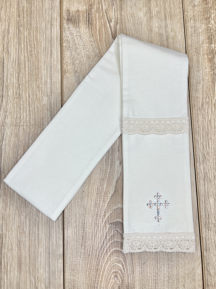 Decor Brodătură naturală, culoare bej, Cruce din cristale
