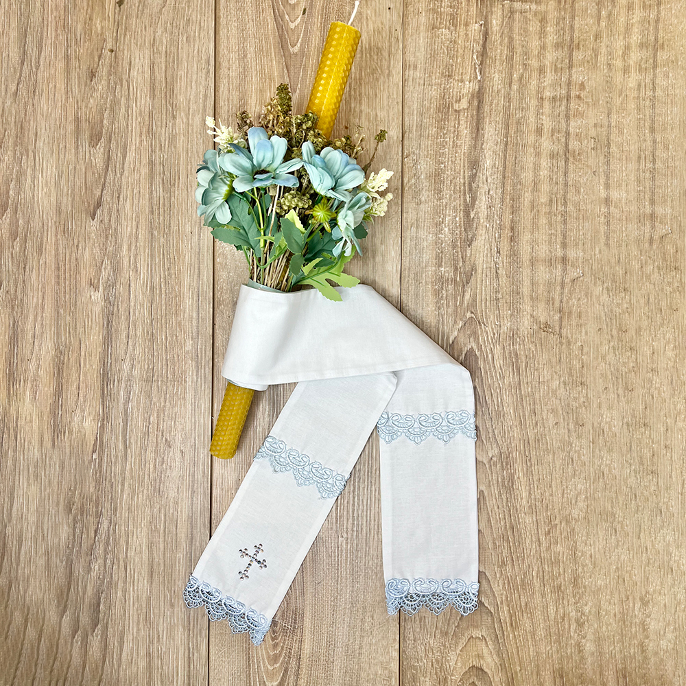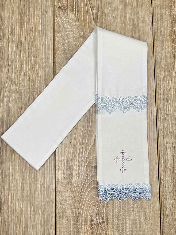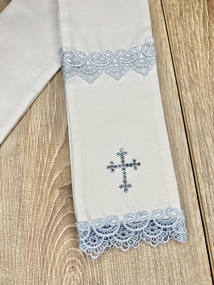 Decor Brodătură naturală, culoare albastră, Cruce din cristale