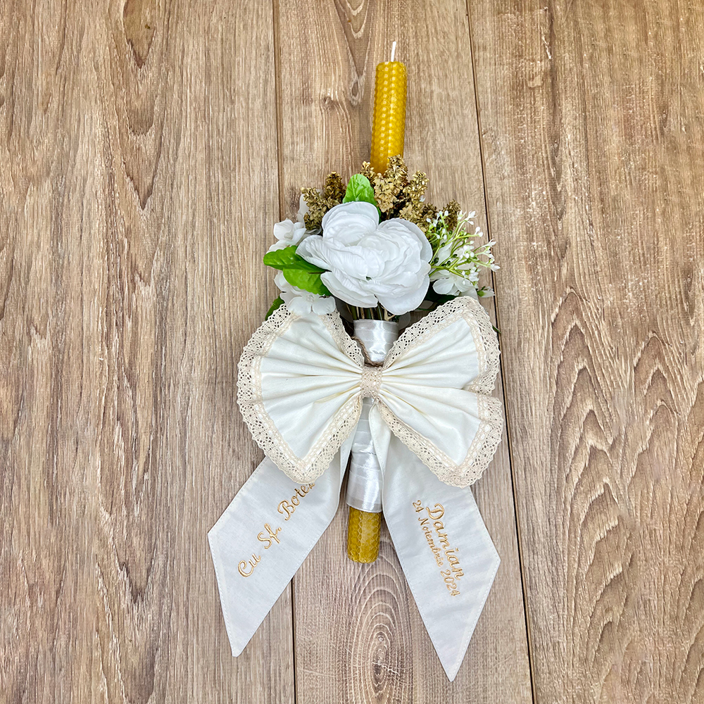 Decor Brodătură naturală, culoare bej, broderie auriu