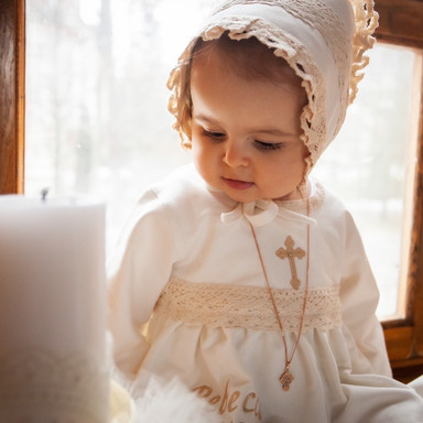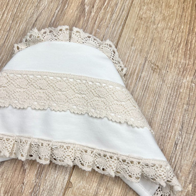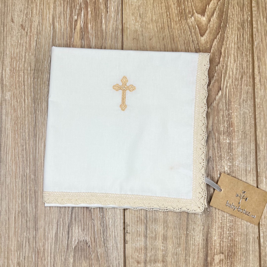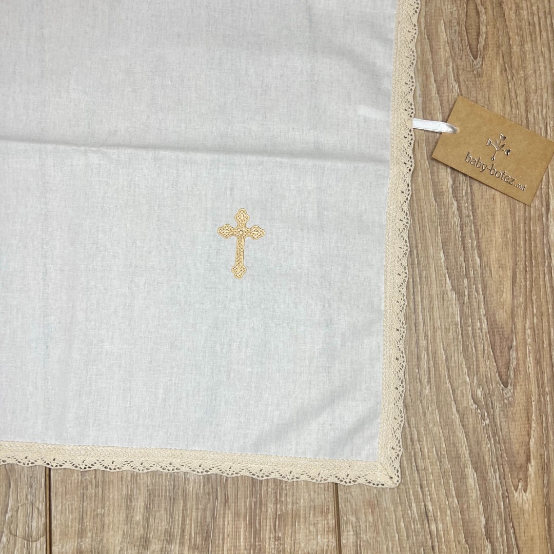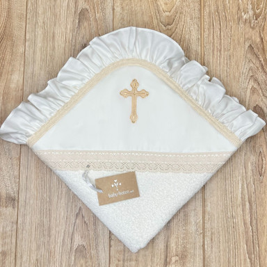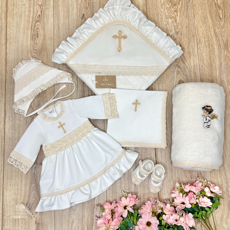 Compoziție prosop cu glugă, rochiță, bonetă, săculeț, scutec, păturică, botoșei