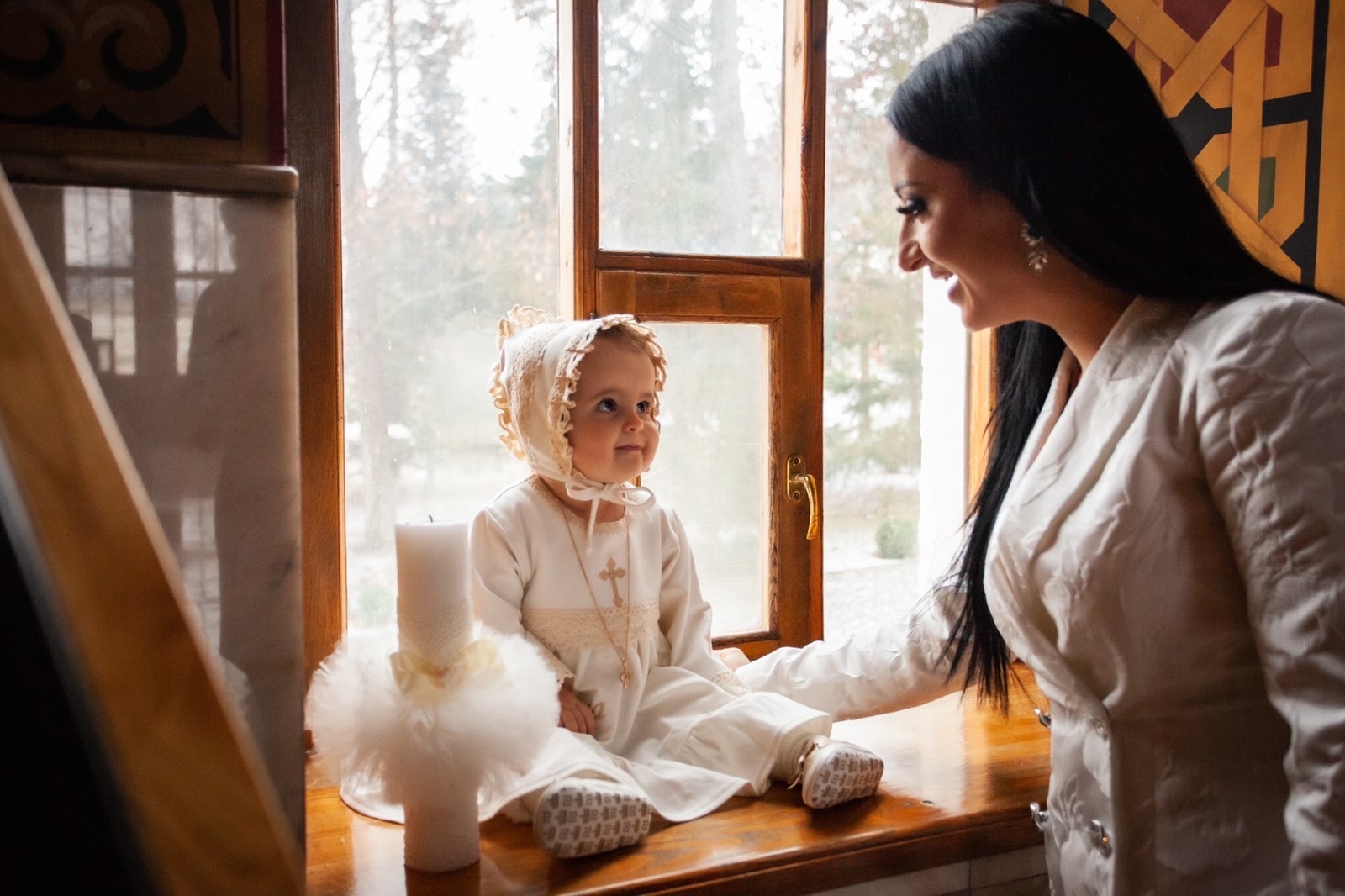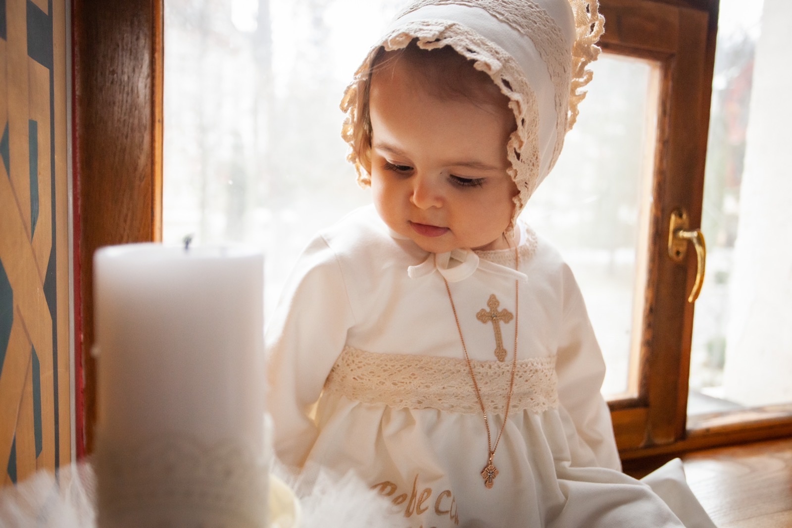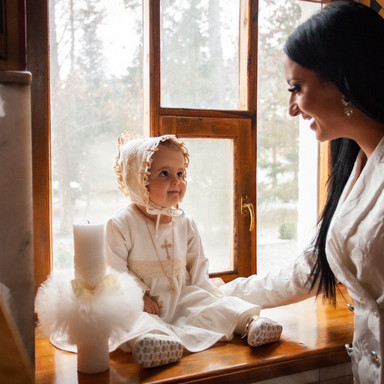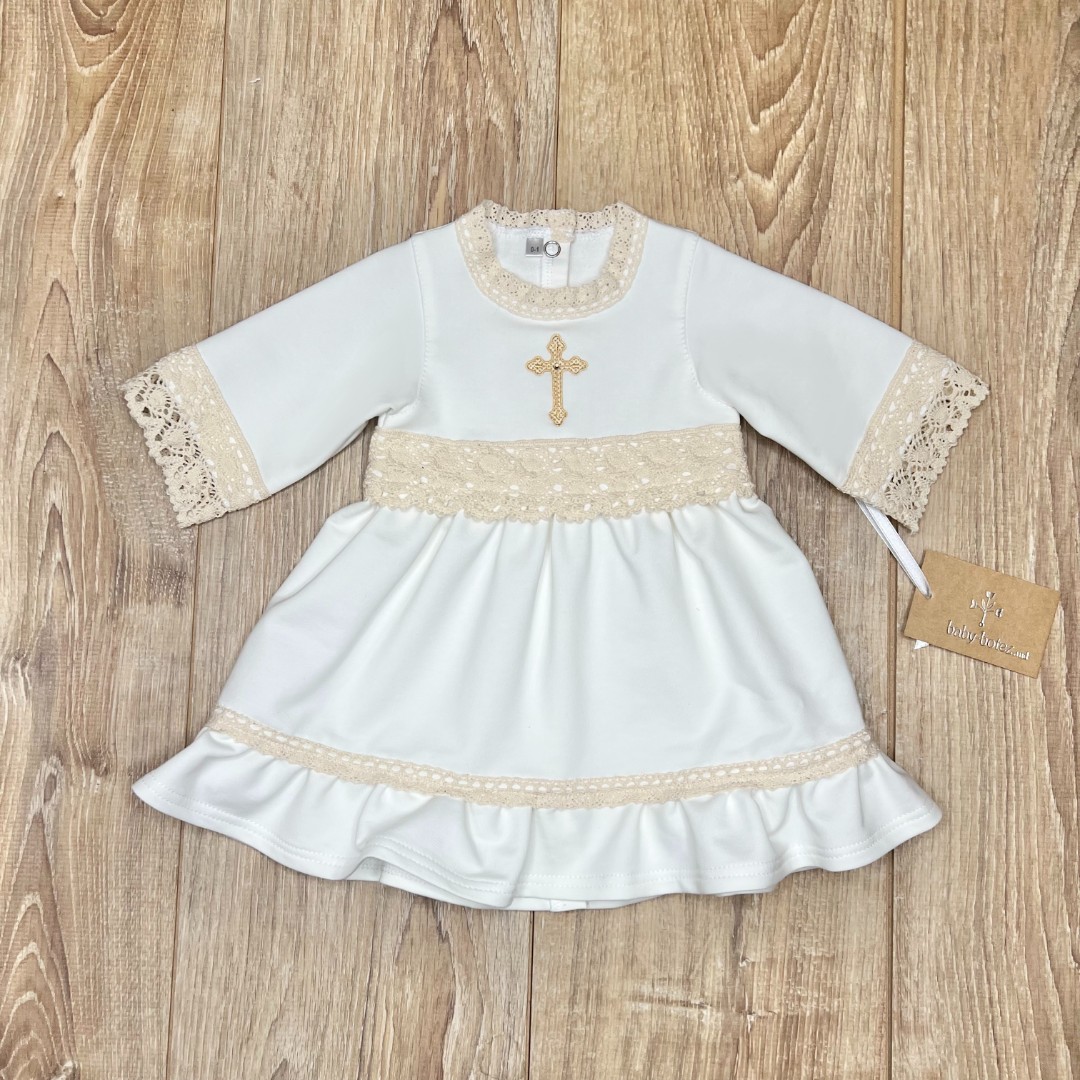 Compoziție prosop cu glugă, rochiță, bonetă, săculeț, scutec, păturică, botoșei