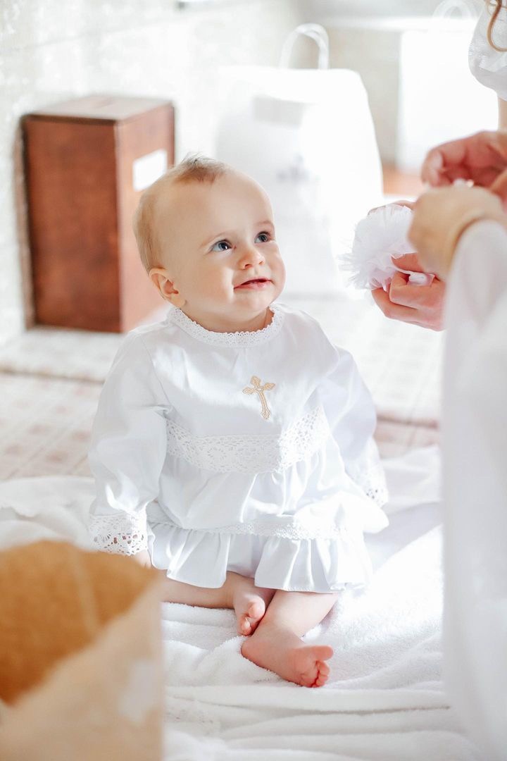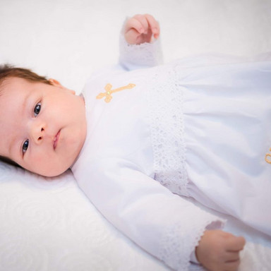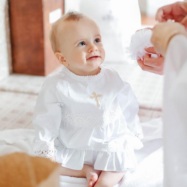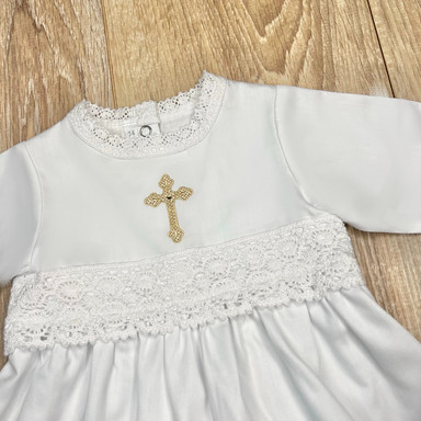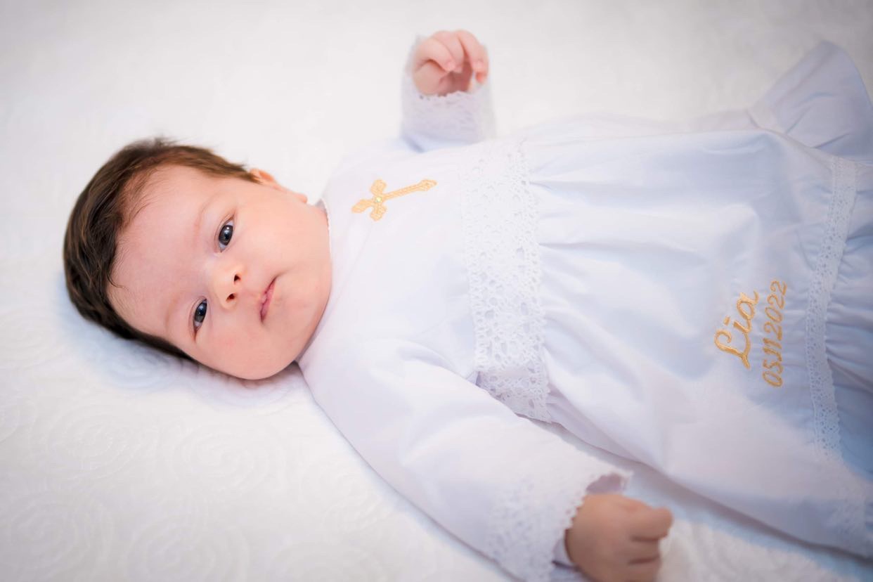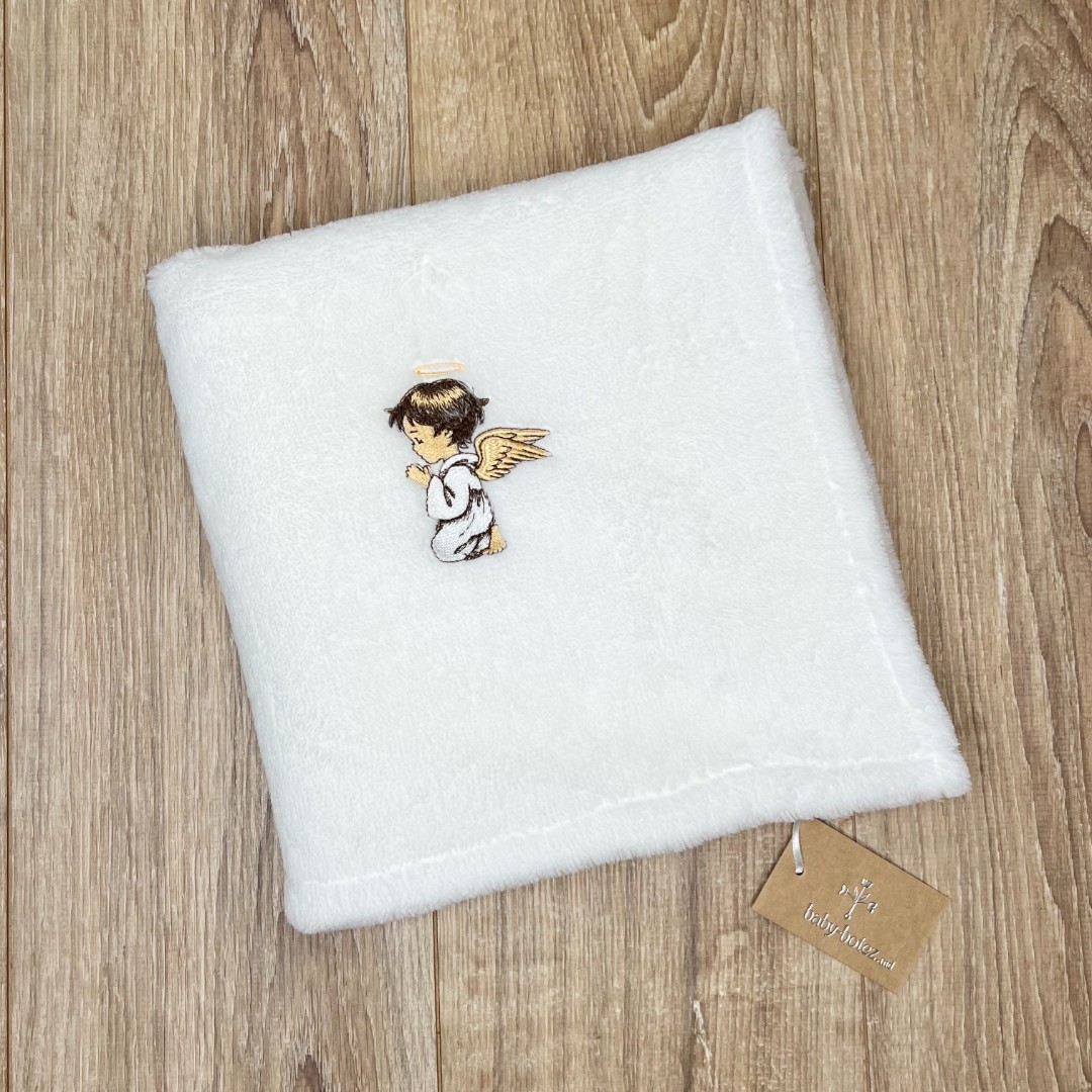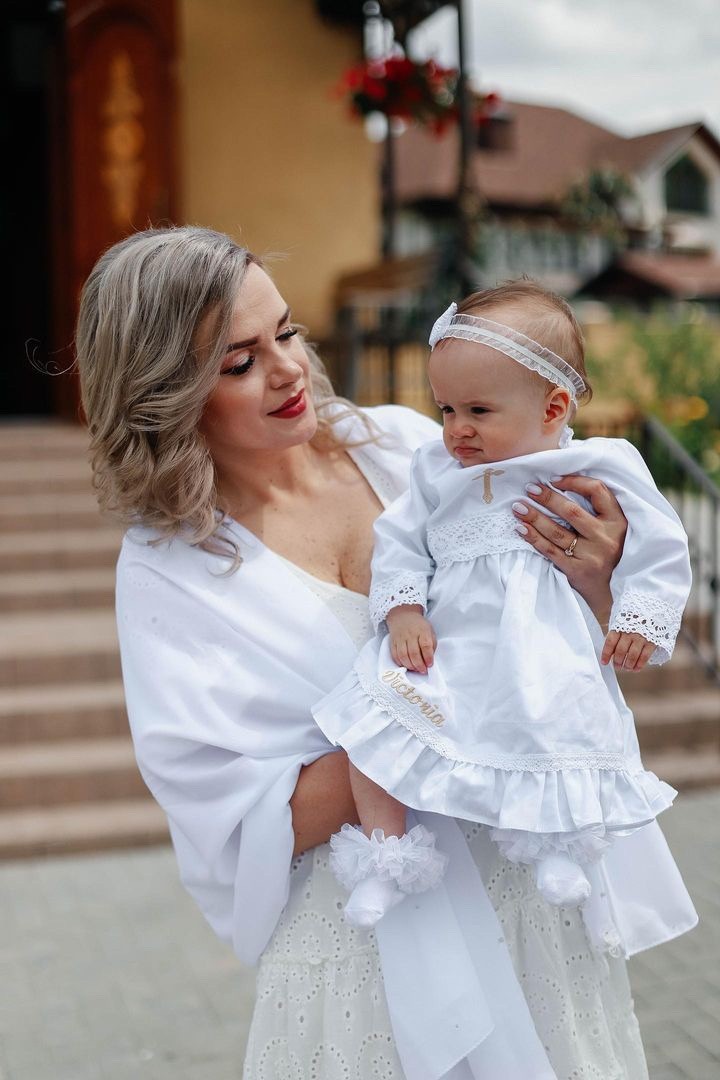 Compoziție prosop cu glugă, rochiță, bonetă, păturică, fundiță, săculeț, botoșei