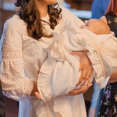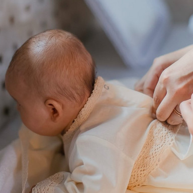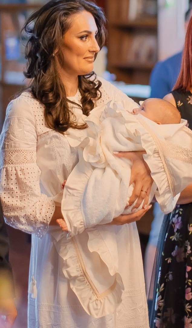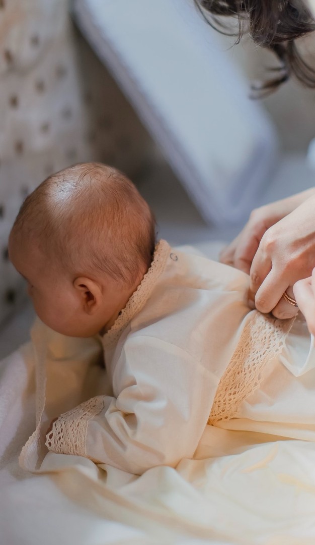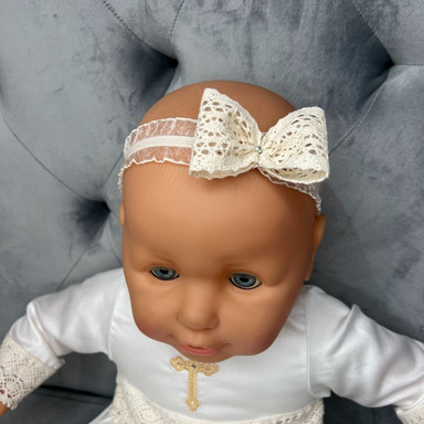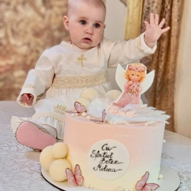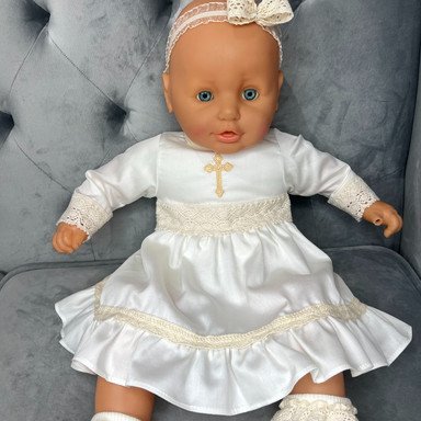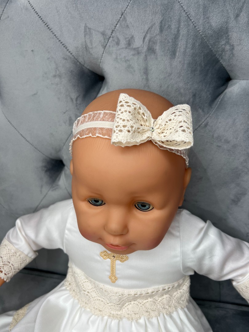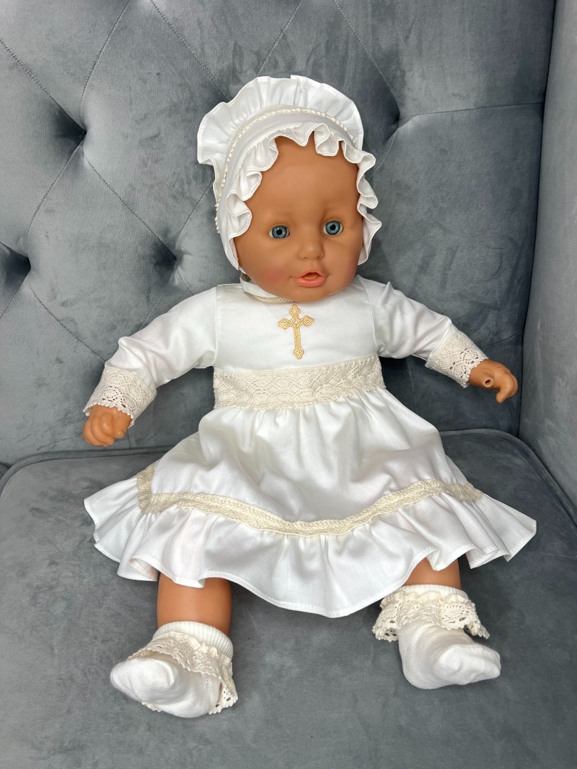 Compoziție prosop cu glugă, rochiță, bonetă, săculeț, fundiță, șosete