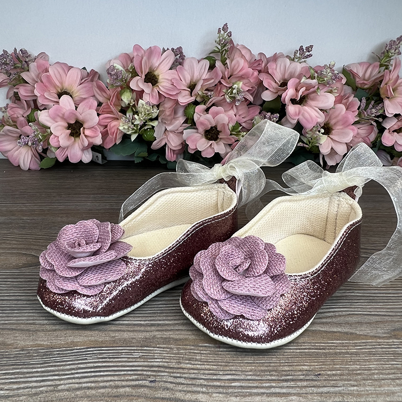 Pantofii cu trandafir sunt o adevărată reprezentare a delicateții și rafinamentului. Ecouderul cu strălucire adaugă un luciu special încălțămintei, iar floarea 3D din material pe partea din față adaugă volum și eleganță. Panglica din organza care fixează încălțămintea pe picior asigură confort și stil.