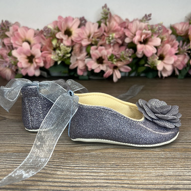 Pantofii cu trandafir sunt o adevărată reprezentare a delicateții și rafinamentului. Ecouderul cu strălucire adaugă un luciu special încălțămintei, iar floarea 3D din material pe partea din față adaugă volum și eleganță. Panglica din organza care fixează încălțămintea pe picior asigură confort și stil.