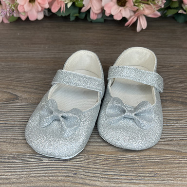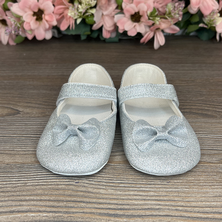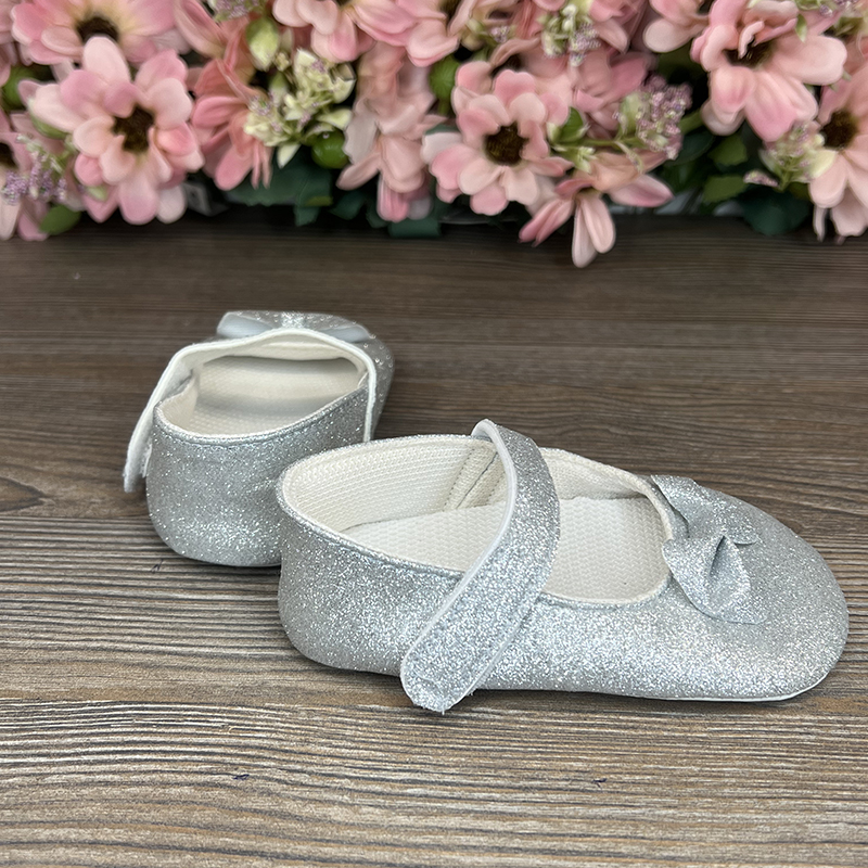 Pantofii cu strălucire argintie sunt o alegere elegantă pentru cei care apreciază rafinamentul și strălucirea. Pielea sintetică cu strălucire argintie conferă încălțămintei un aspect sofisticat și festiv. Închizătoarea cu arici asigură o fixare sigură pe piciorul copilului, iar efectul de strălucire adaugă o notă suplimentară de eleganță și farmec oricărei ținute.