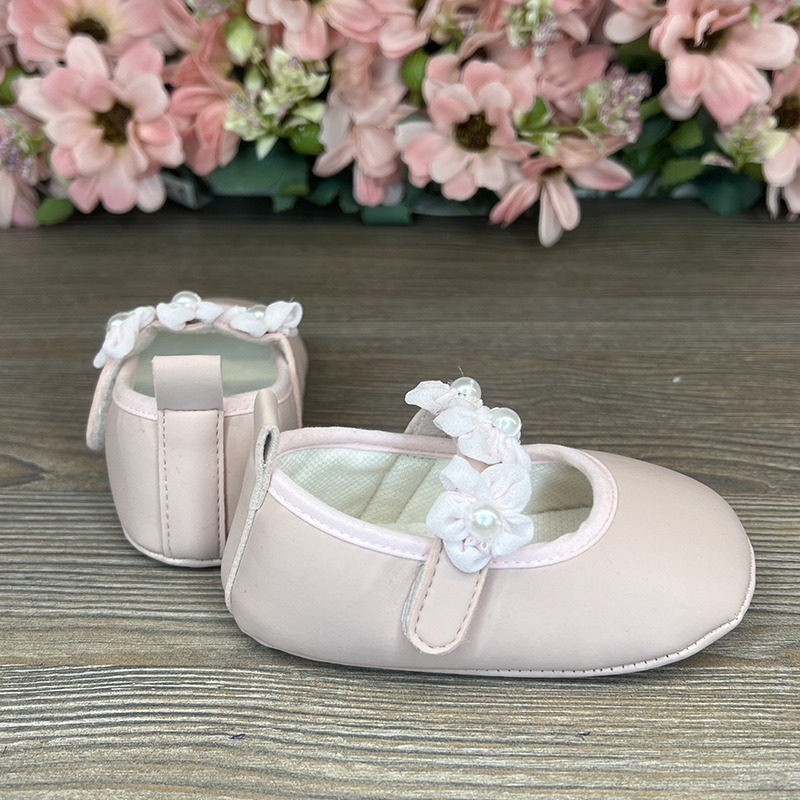 Pantofii din nailon, decorați cu flori și perle, adaugă rafinament oricărei ținute. Se închid ușor cu arici, asigurând o fixare sigură și confortabilă. Acesti pantofi sunt perfecti pentru ocazii speciale, oferind un look complet și elegant.