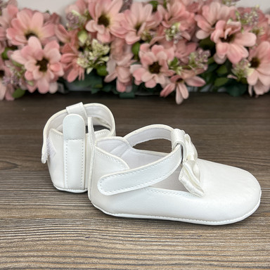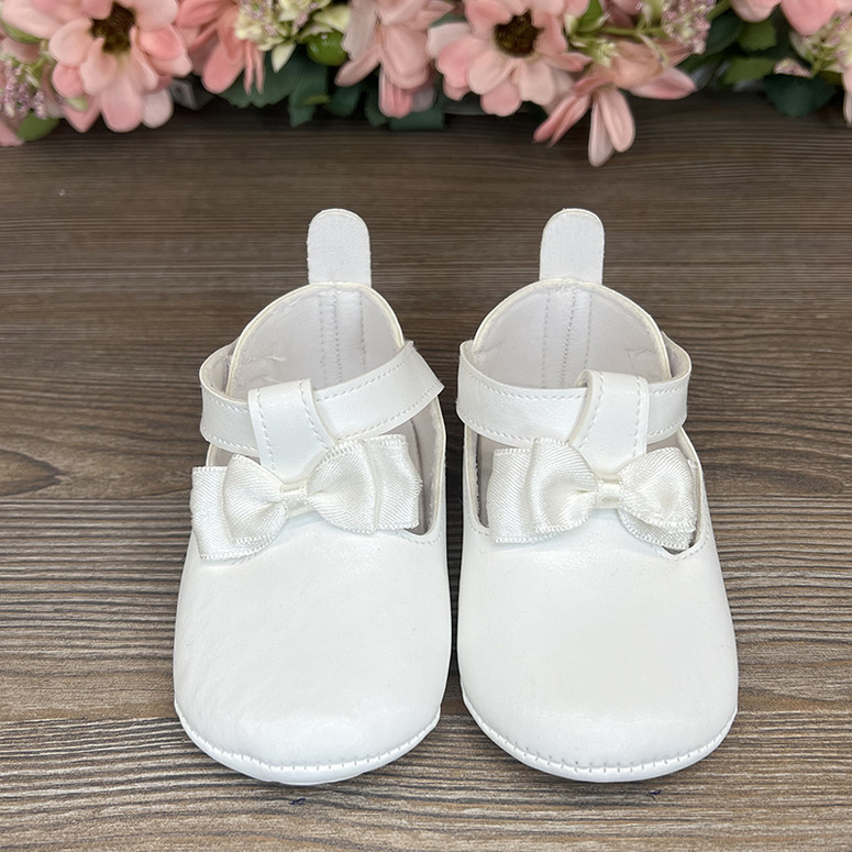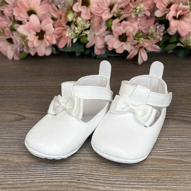 Pantofii din piele sintetică, decorați cu o fundiță elegantă din satin, adaugă rafinament oricărei ținute. Închizătoarea ușoară cu arici asigură confort și fixare sigură, iar fundița stilizată accentuează finețea și farmecul încălțămintei, făcând-o alegerea perfectă atât pentru ținutele de sărbătoare, cât și pentru cele de zi cu zi