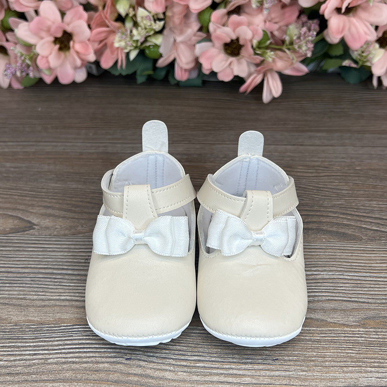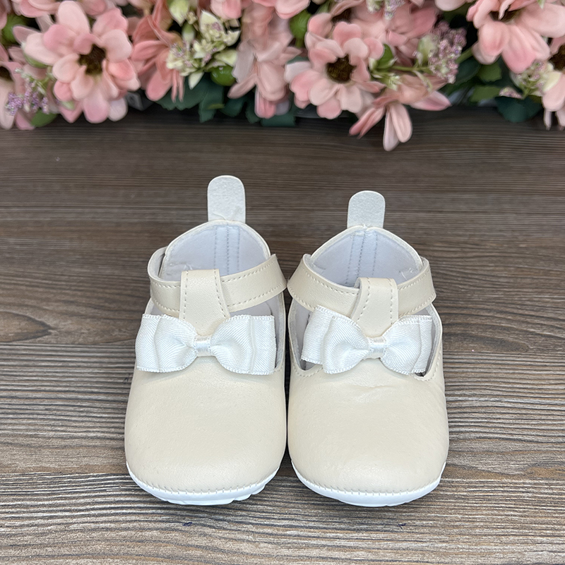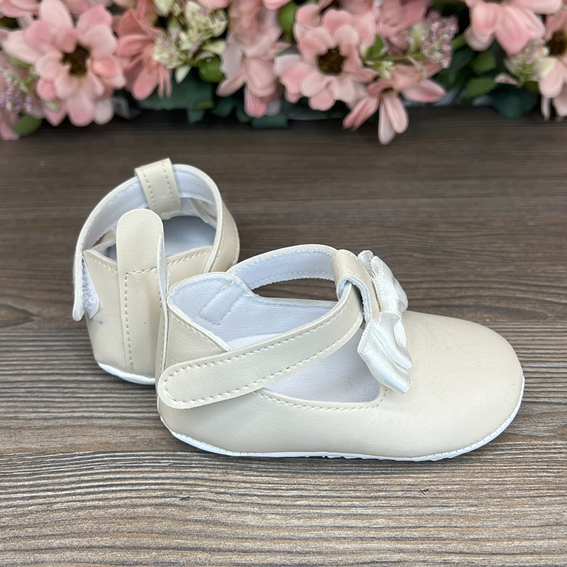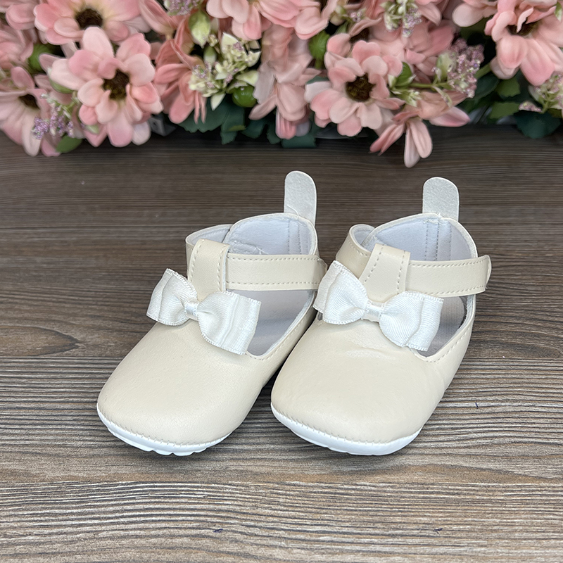 Pantofii din piele sintetică, decorați cu o fundiță elegantă din satin, adaugă rafinament oricărei ținute. Închizătoarea ușoară cu arici asigură confort și fixare sigură, iar fundița stilizată accentuează finețea și farmecul încălțămintei, făcând-o alegerea perfectă atât pentru ținutele de sărbătoare, cât și pentru cele de zi cu zi