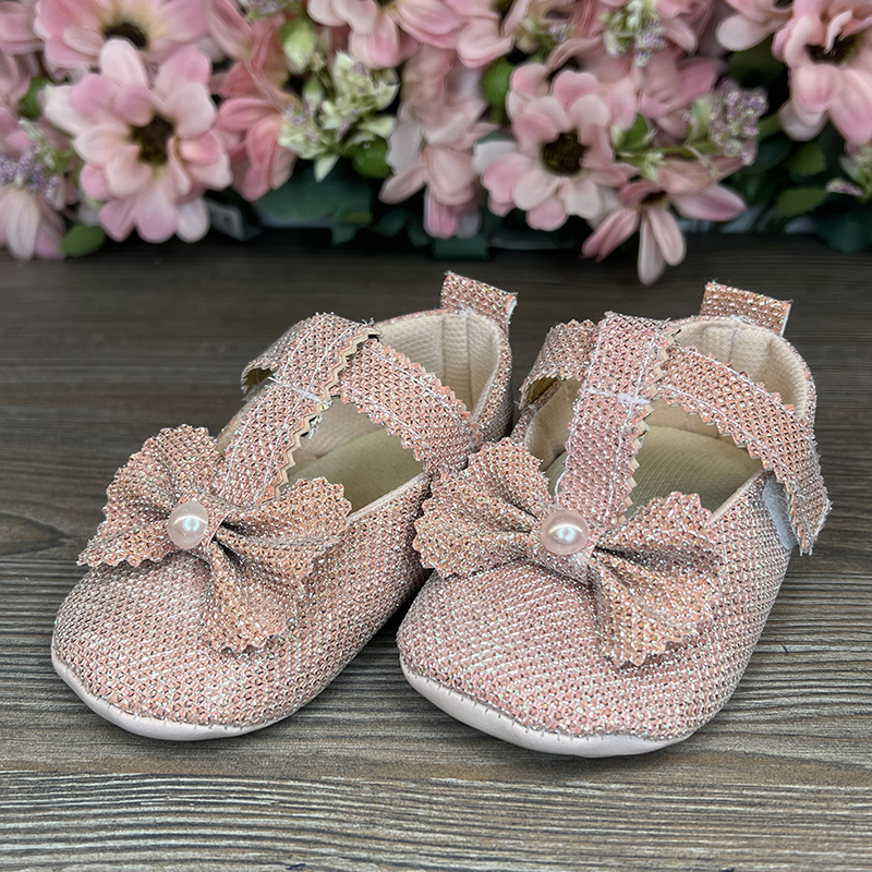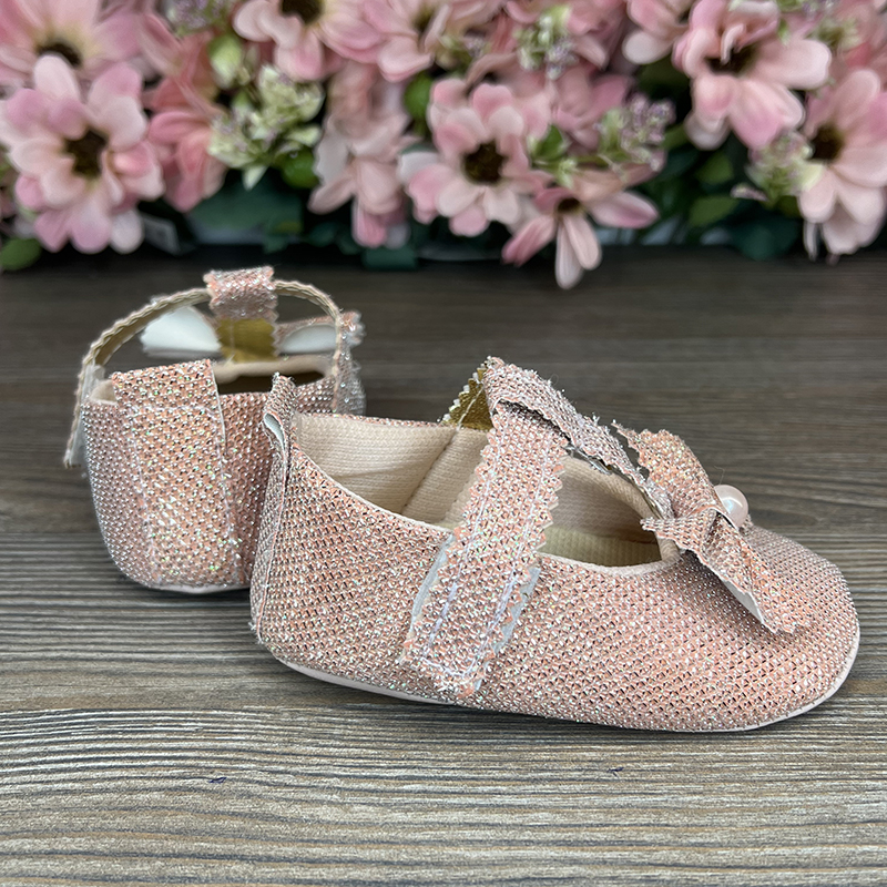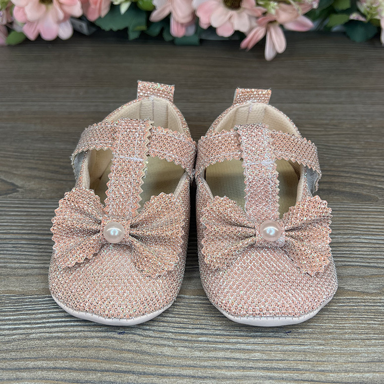 Pantofiori din plasă – lejeritate și grație în fiecare detaliu. Realizați din piele ecologică cu adaos de strălucire, oferind un efect elegant. Decorați cu o fundiță delicată și o perlă. Închiderea cu arici asigură o potrivire confortabilă pe piciorul copilului.