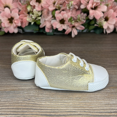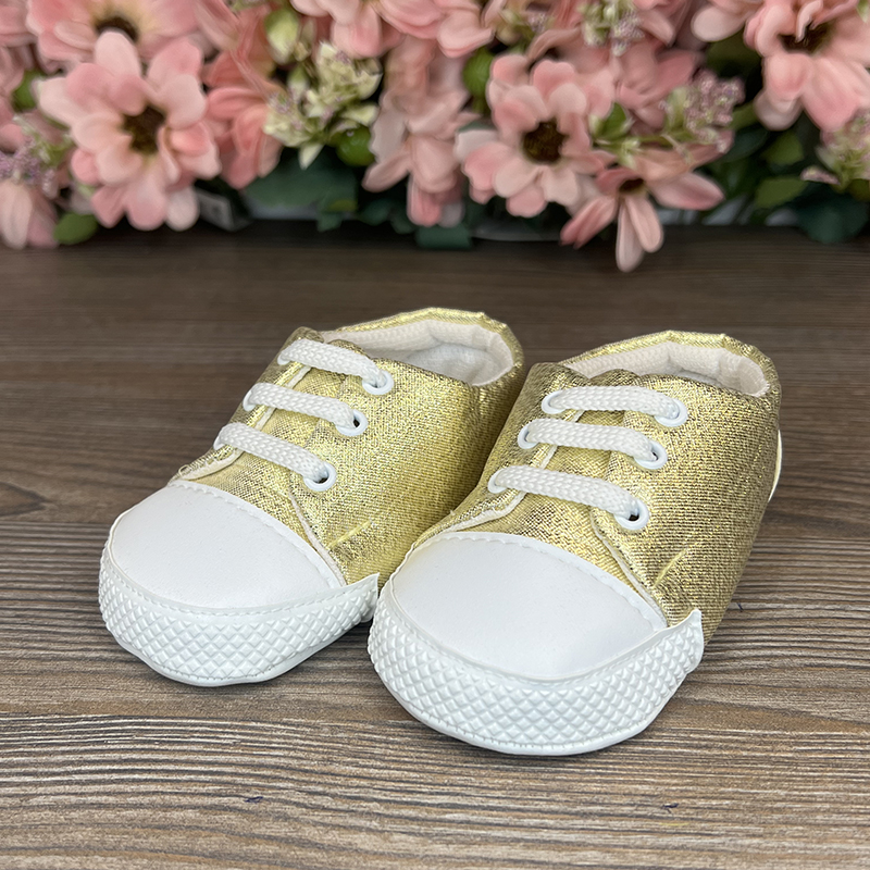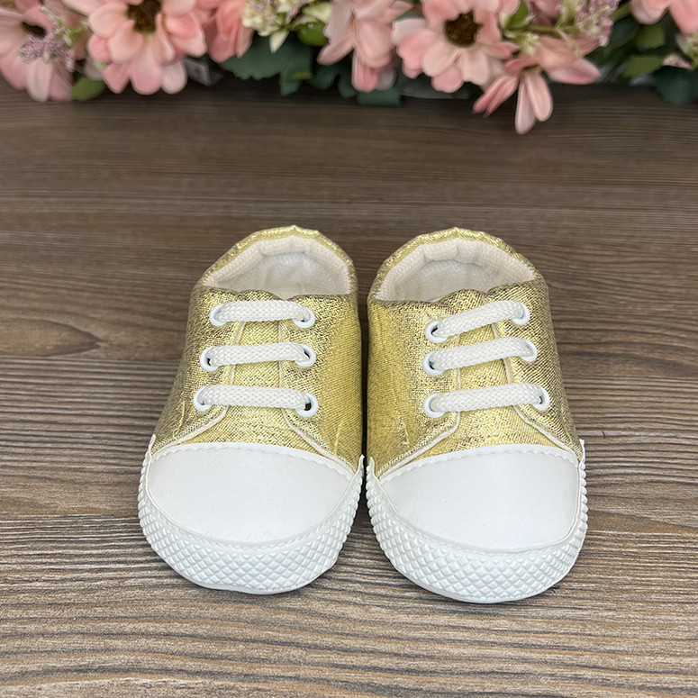 Tenisii cu un finisaj auriu, confecționați dintr-un amestec de material textil și ecouder, sunt alegerea perfectă pentru plimbări elegante și confortabile. Închiderea cu șireturi asigură o fixare fermă, iar detaliile aurii adaugă un aspect rafinat și luminos, evidențiind unicitatea stilului.