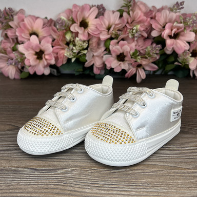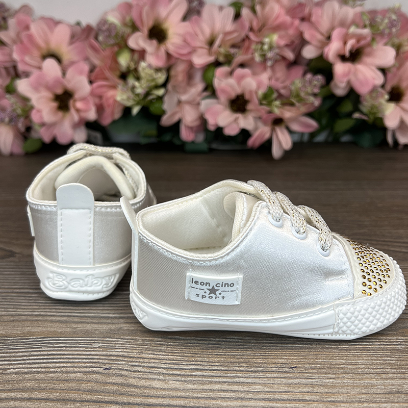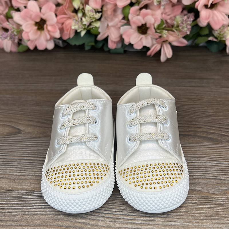Pantofii sport cu pietre sunt o combinație de eleganță și confort pentru micuții stilizați. Atlasul combinat cu ecouder face încălțămintea nu doar frumoasă, ci și durabilă. Strasurile de pe vârf adaugă rafinament, iar șireturile asigură o fixare sigură și confortabilă la purtare.