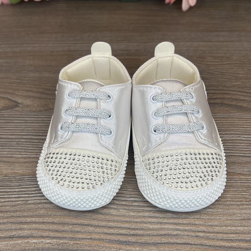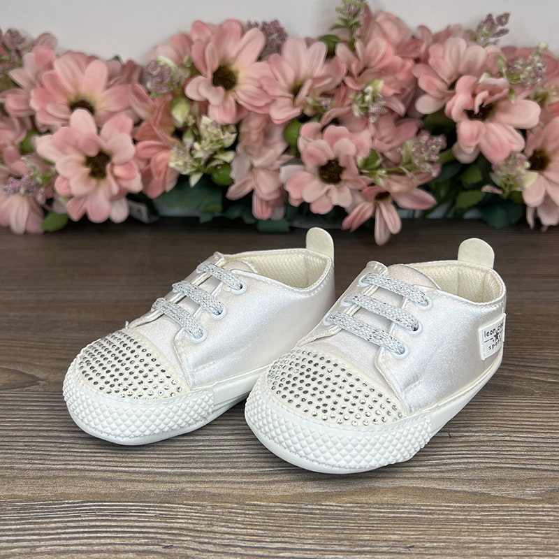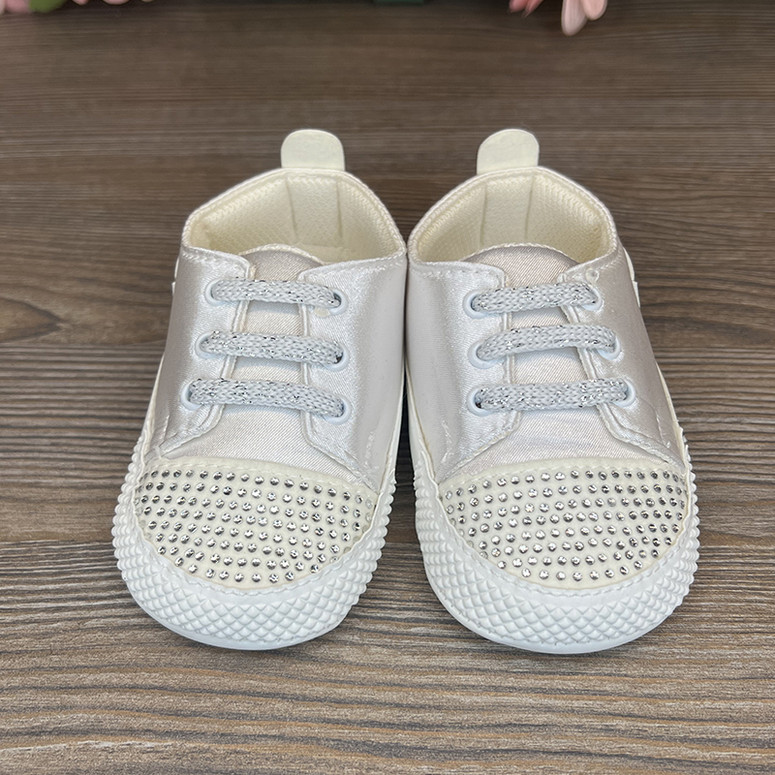 Pantofii sport cu pietre sunt o combinație de eleganță și confort pentru micuții stilizați. Atlasul combinat cu ecouder face încălțămintea nu doar frumoasă, ci și durabilă. Strasurile de pe vârf adaugă rafinament, iar șireturile asigură o fixare sigură și confortabilă la purtare.