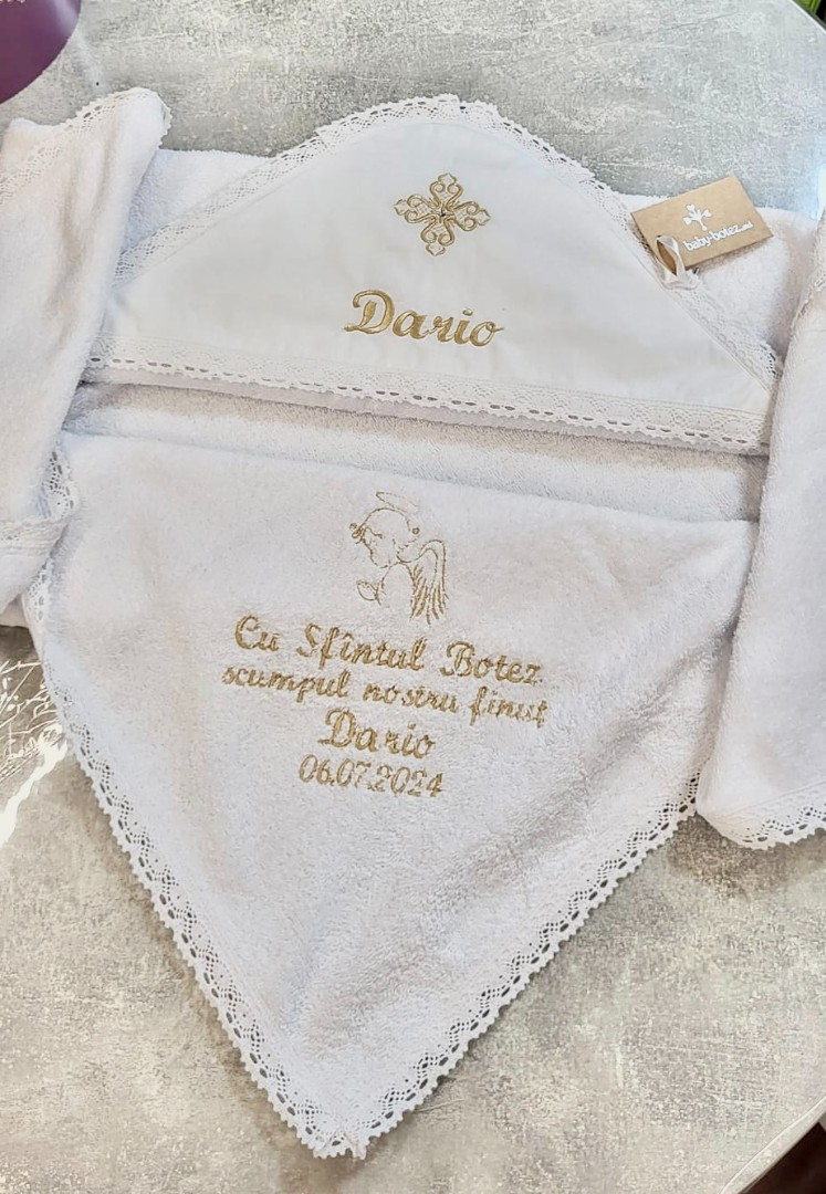 Prosop cu glugă, colț de prosop din prosop moale, decorat cu țesătură satinate și broderie