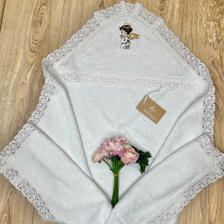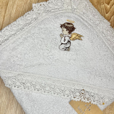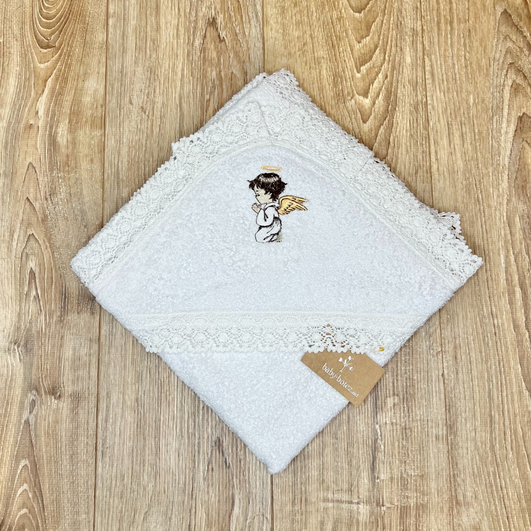 Prosop cu glugă, decorat cu broderie și dantelă