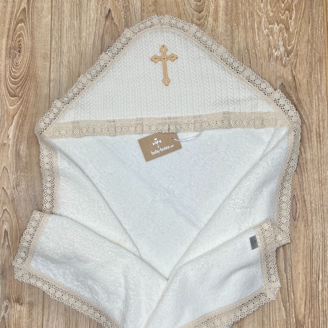 Prosop cu glugă, colț de prosop din prosop moale, decorat cu țesătură tricotată și broderie