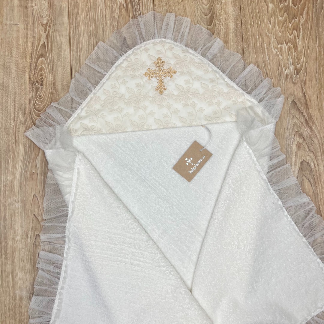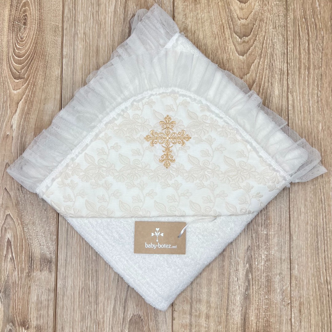 Prosop cu glugă, colț de prosop din prosop moale, decorat cu dantelă și broderie.