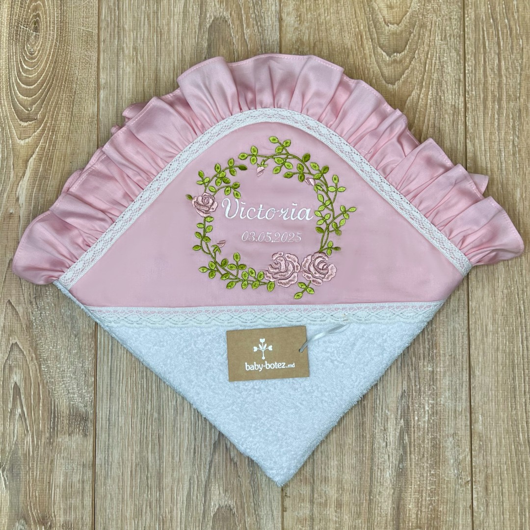 Prosop cu glugă, colț de prosop din prosop moale, decorat cu țesătură satinate și broderie.
