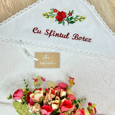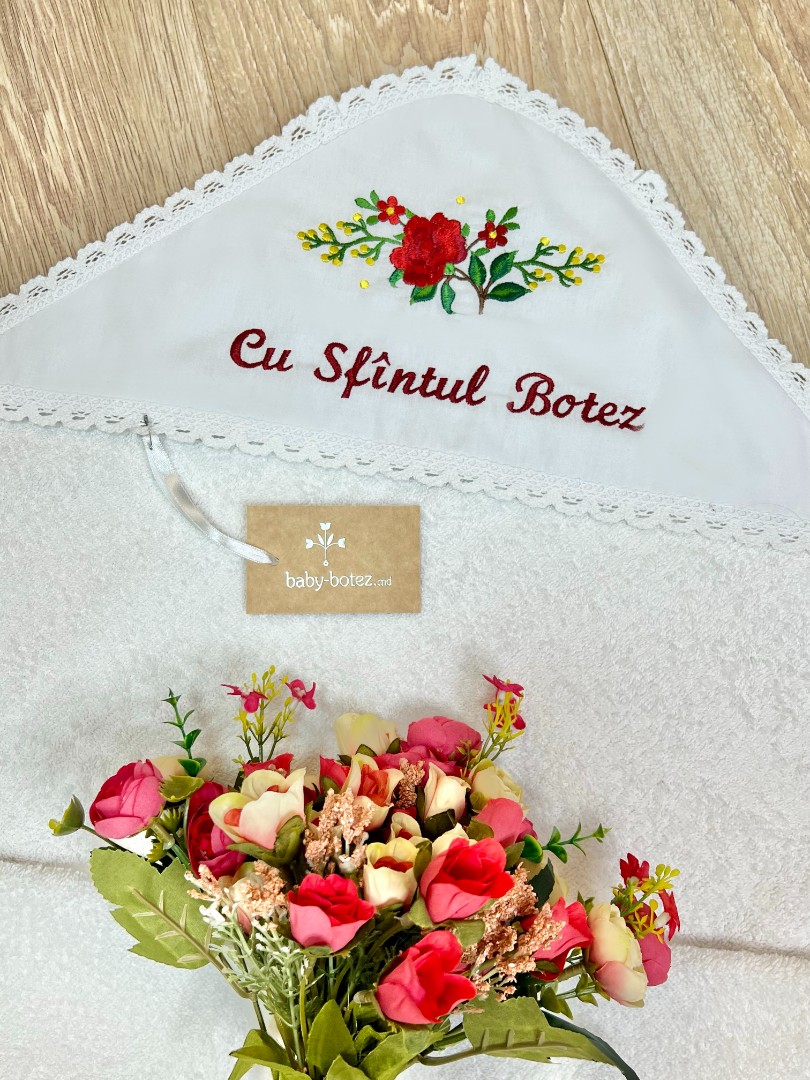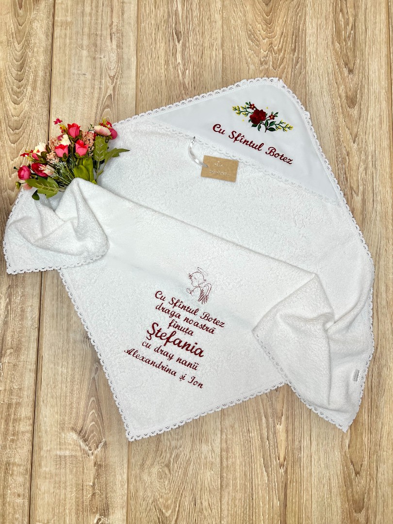 Prosop cu glugă, colț de prosop din prosop moale, decorat cu țesătură satinate și broderie.