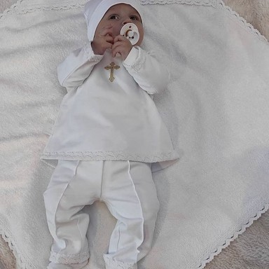 Descriere Costum din tricot, combinând confortul modern cu simbolistica clasică religioasă