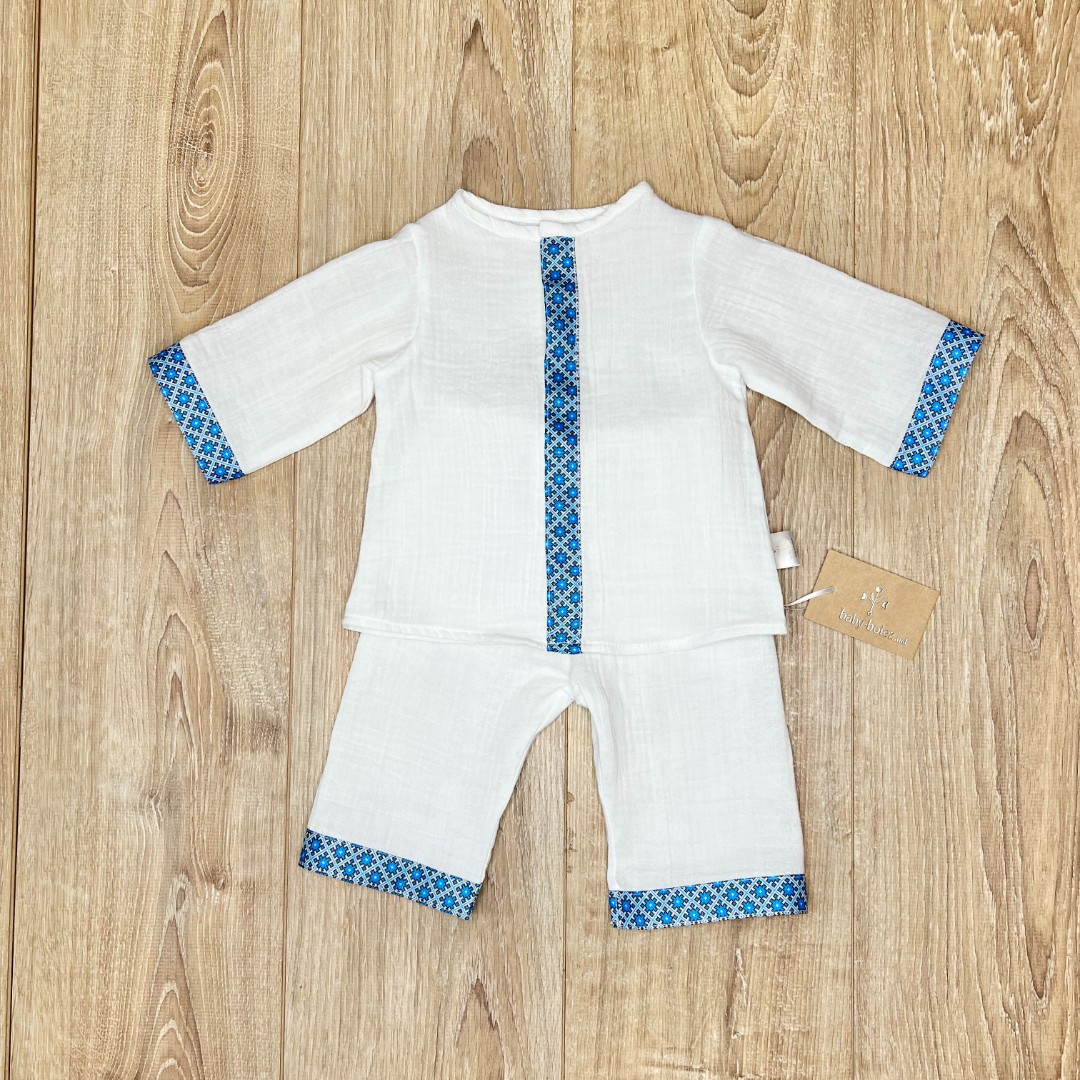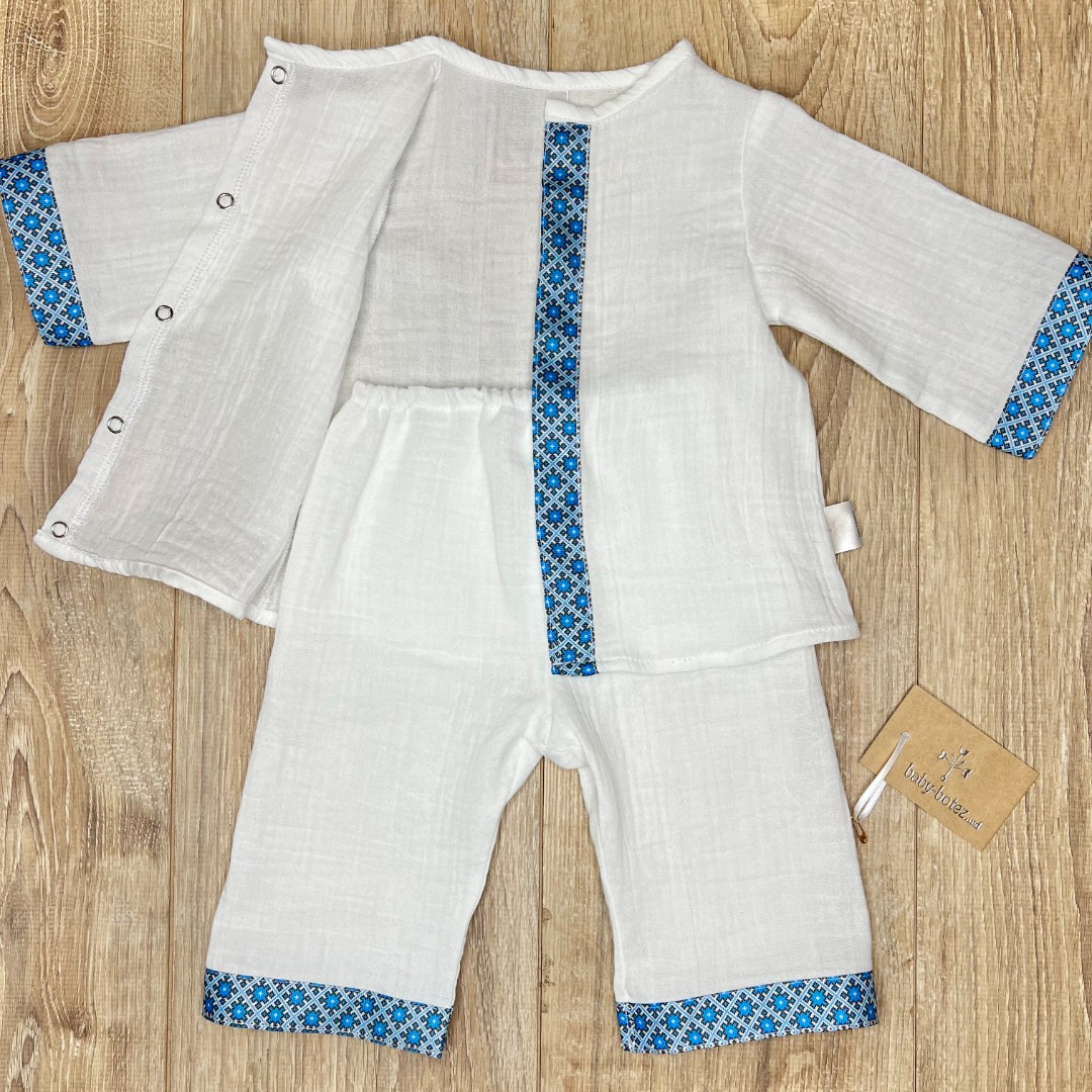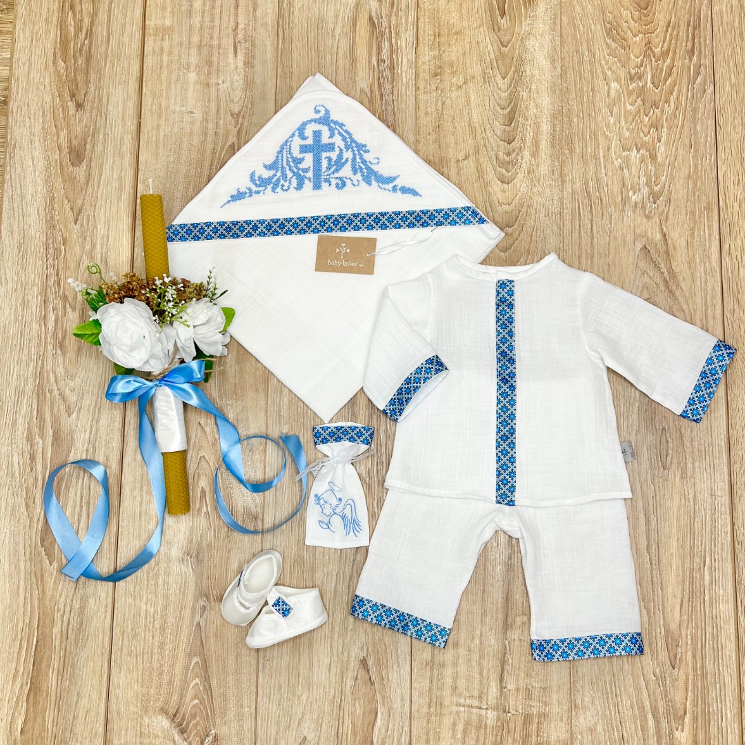 Compoziție Național! Costum, scutec cu glugă, botoșei, săculeț, lumânare cu buchet