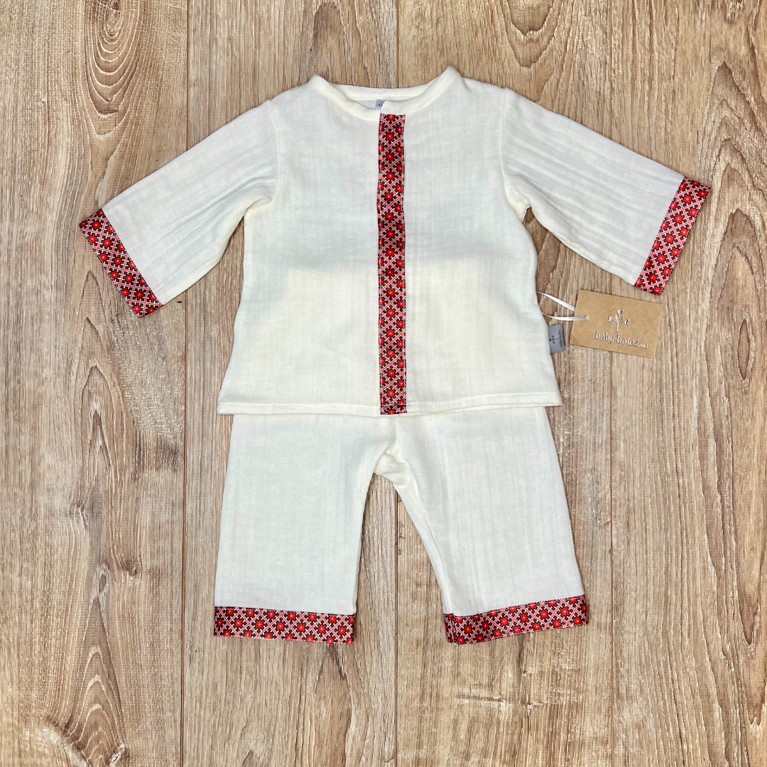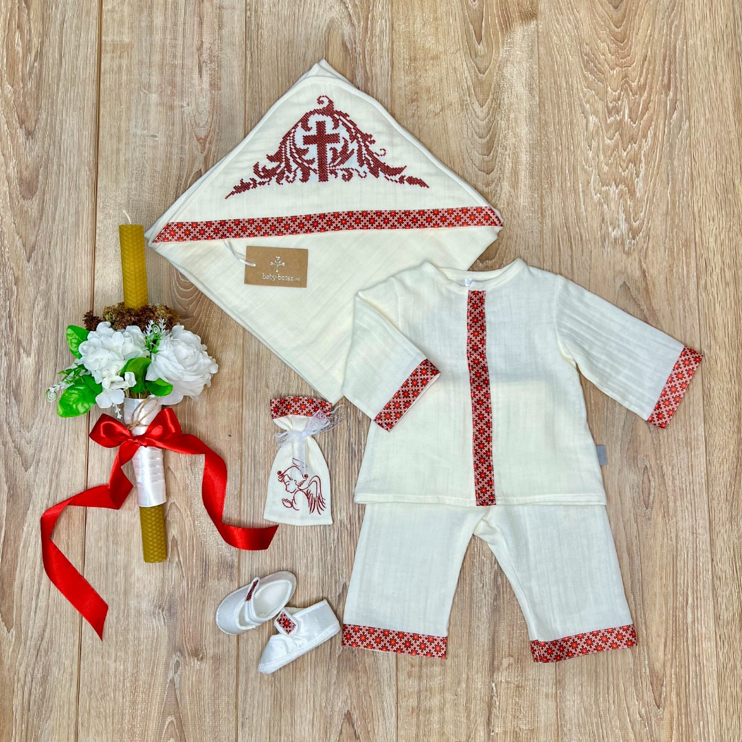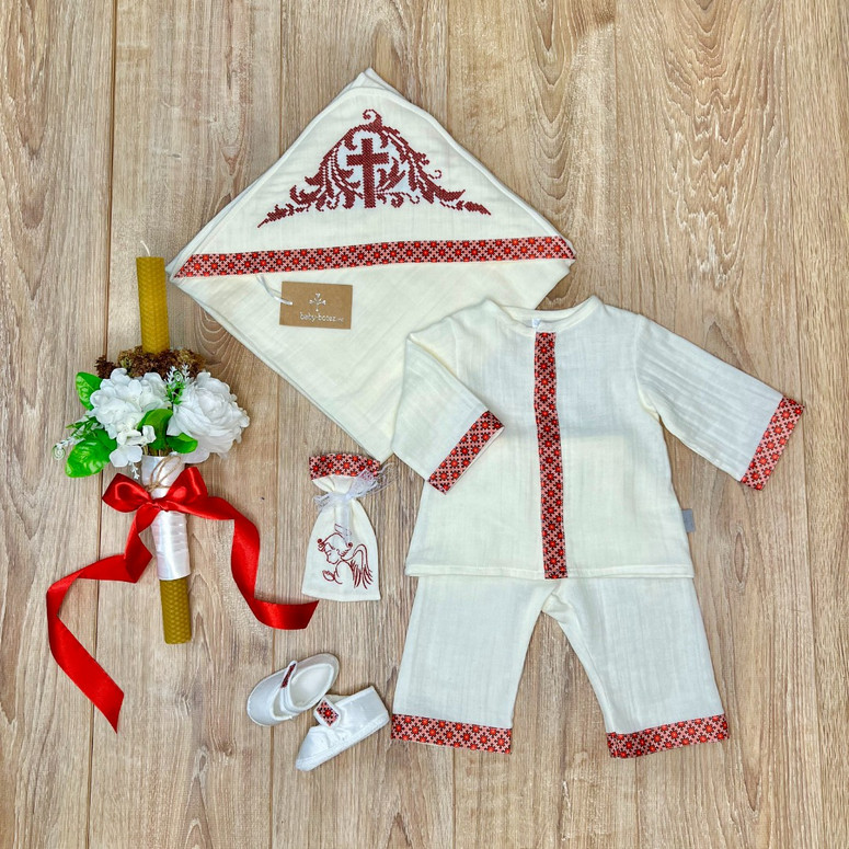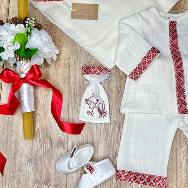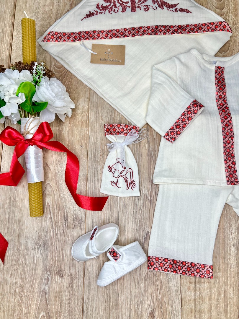 Compoziție Național! Costum, scutec cu glugă, botoșei, săculeț, lumânare cu buchet