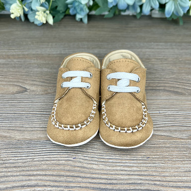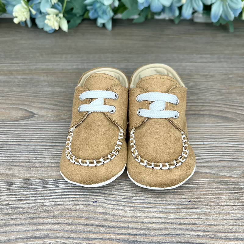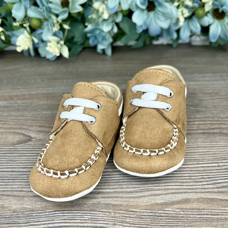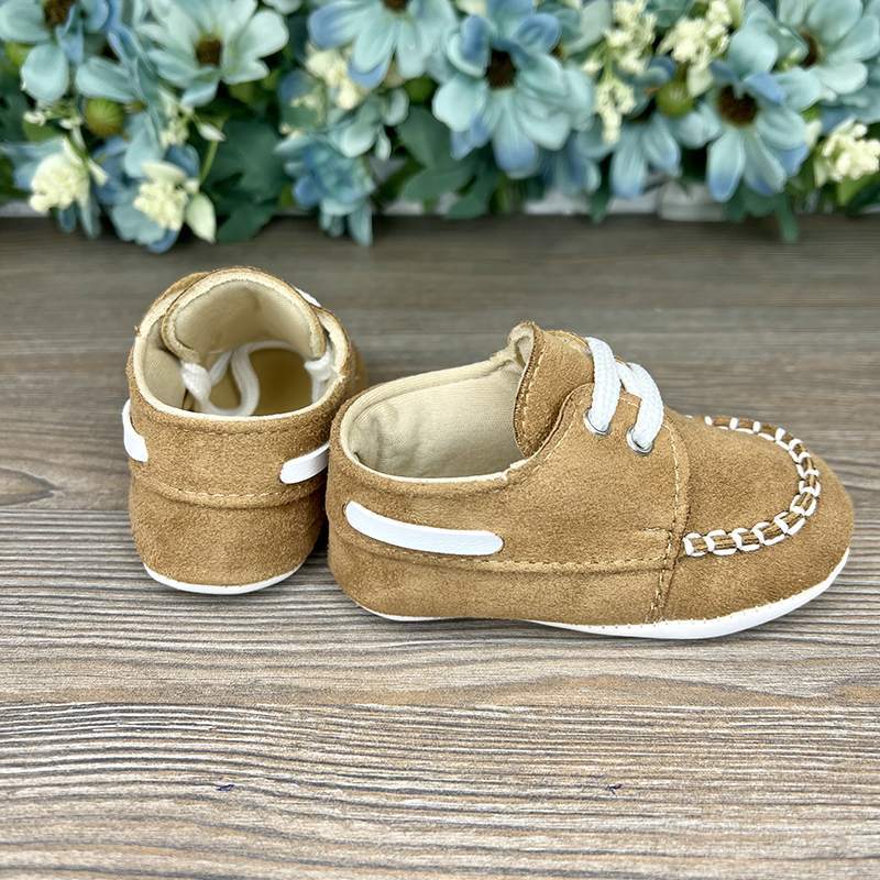 Pantofi tip ghetuțe cu șireturi din piele întoarsă ecologică, care nu restricționează mișcarea picioarelor și degetelor. Ușor de încălțat și descălțat, oferind confort maxim pentru micuțul tău