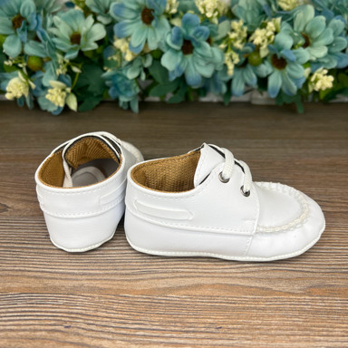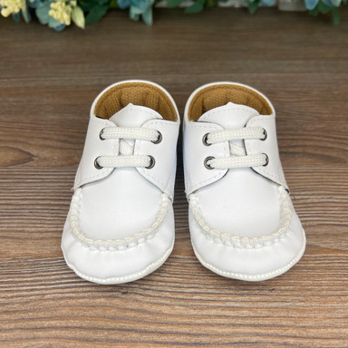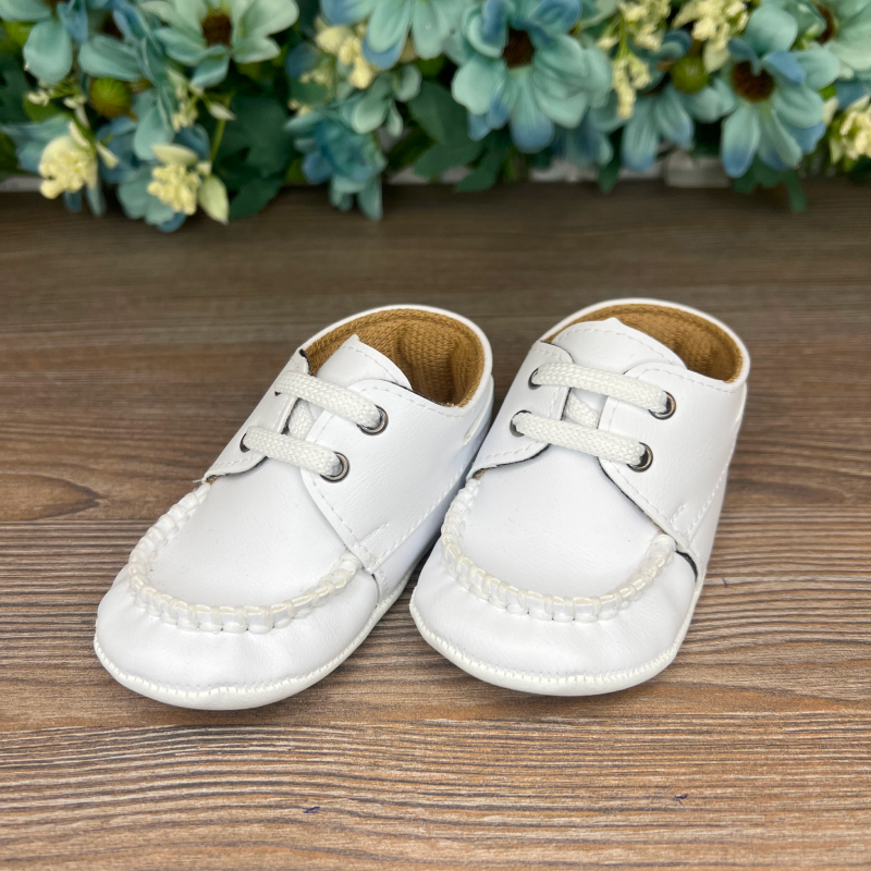 Adidași eleganți albi pentru copii din piele ecologică. Designul stilat și culoarea versatilă se potrivesc ușor cu orice ținută, adăugând o notă de rafinament și confort