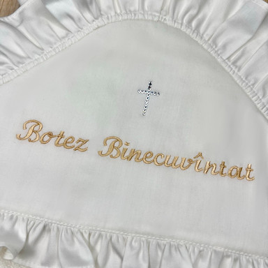 Prosop cu glugă, colț de prosop din prosop moale, decorat cu țesătură satinate și broderie. Margine din volan satinat